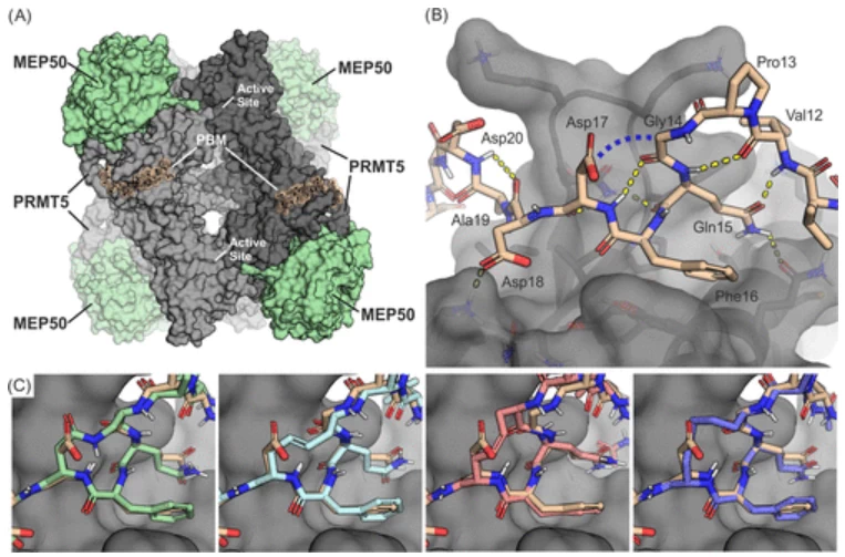 The PRMT5-MEP50 methyltransferase is a major target for anticancer drug discovery, and modulators of its interactions with different regulatory proteins are in high demand because they modulate PRMT5 substrate selectivity.